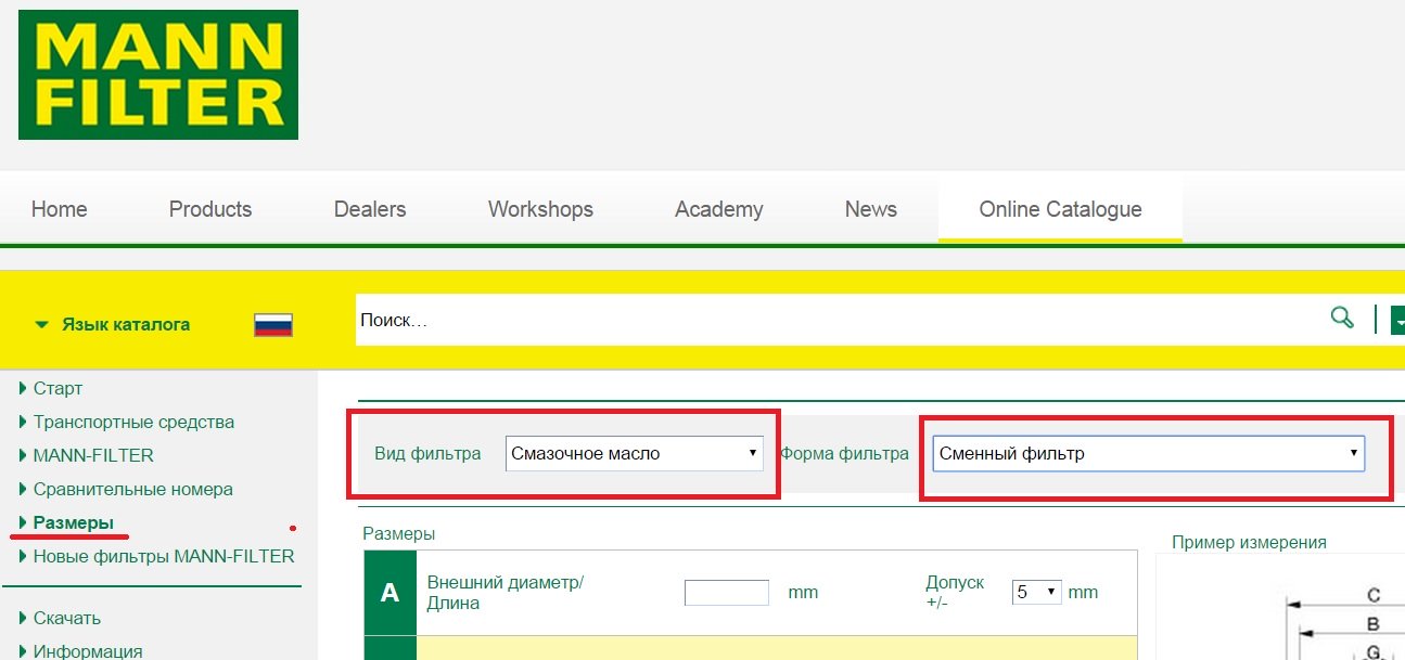 I visit http://catalog.mann-filter.com/EU/rus/ website.
