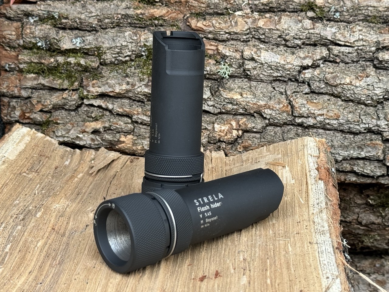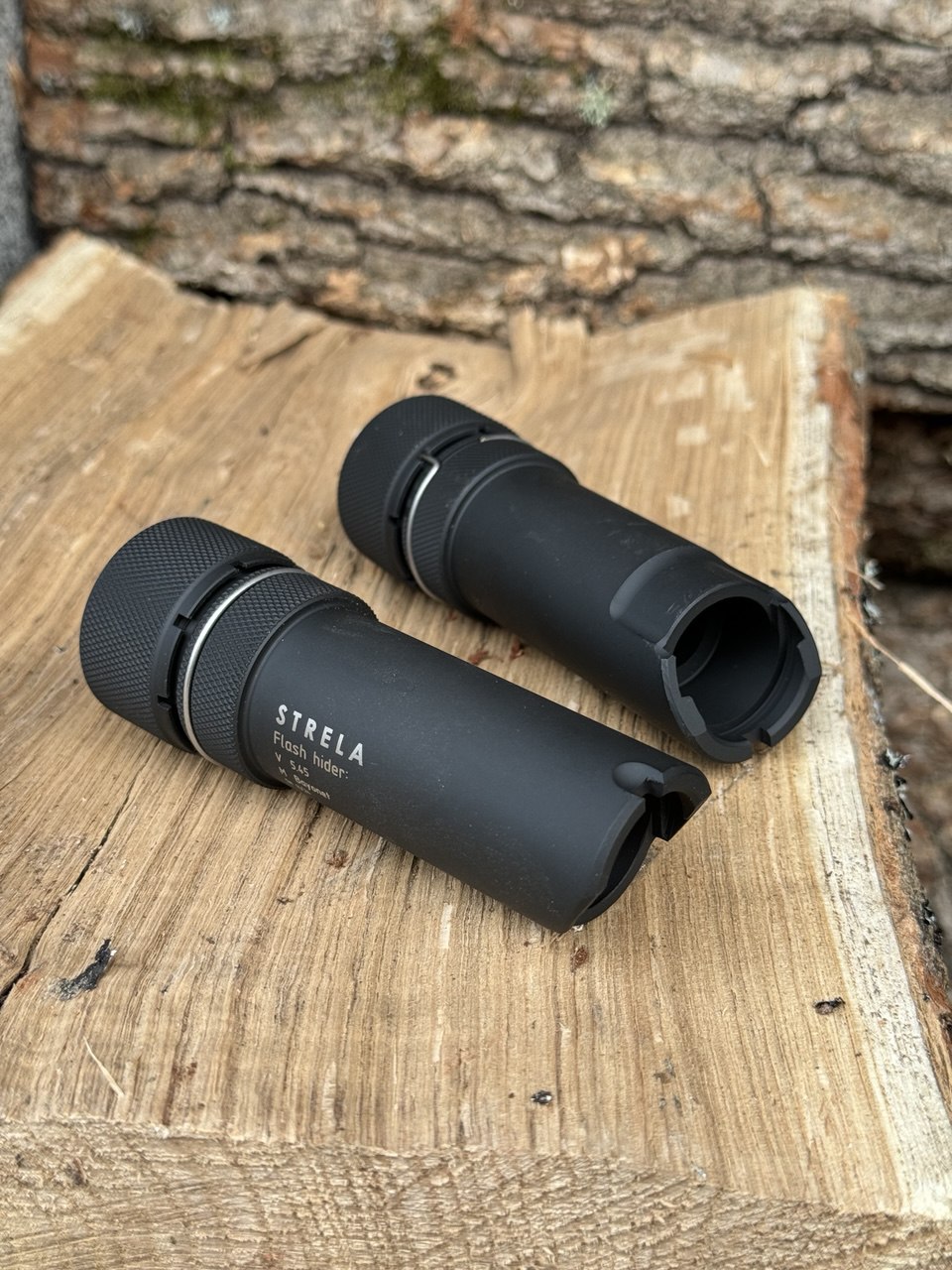 Эффективное дульное устройство для снижения дульной вспышки. Минимизирует влияние вспышки на прицельные устройства и незначительно снижает звук и направляет его в сторону цели.