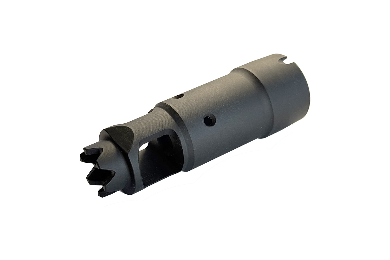 «Вовчий Зуб Gen2» - це сучасна адаптація дулового гальма-компенсатора (ДГК), широко використовуваного на цивільних версіях карабінів сімейства АК. Цей ДТК розроблено з урахуванням вимог стрільців для підвищення ефективності ведення вогню і поліпшення контролю зброї.